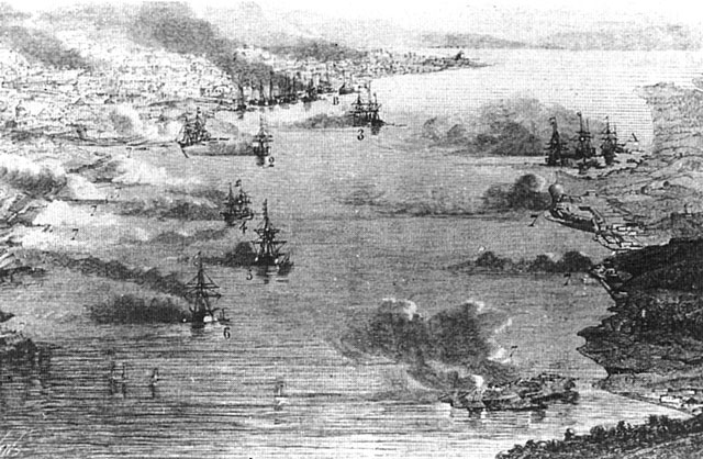 これに対し、波に揺られることのない砲台の守備兵たちは、訓練によってどのように撃てばどこに着弾するかを把握していましたので、命中弾が多くなり、イギリス艦隊に少なからぬ損害を与えました。